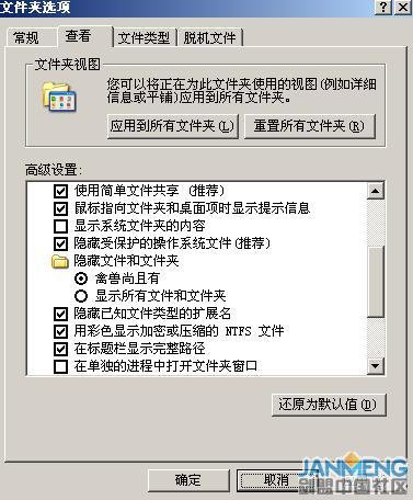隐藏受保护的操作系统文件(推荐)前面的勾去掉 (操作2)