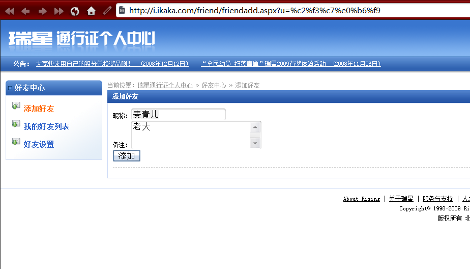 貌似点了加为好友,弹出的网页,在呢称那显示的是问号,而不会把好友名字自动显示上去,必须自己输入:kaka6: