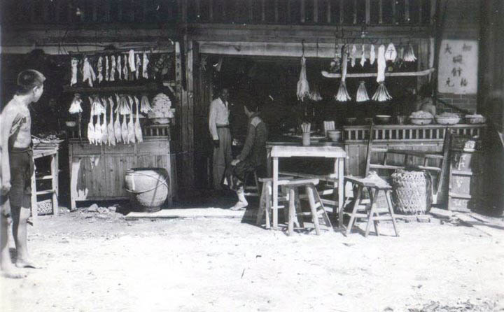 安仁街218号居所外晾晒的衣服和鱼干。(1948年,上海)