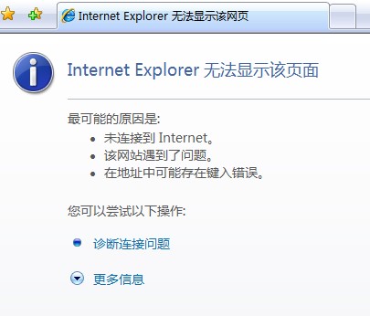 无法访问网络时打开IE浏览器状态: