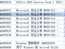 在控制面板里打开添加删除程序,勾选显示所有更新,对应补丁名称,把这几个补丁删除掉,重启后再用卡卡打补丁观察。