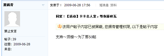 可以告诉你 看你申请实习生上才禁言 如果不是 这样刷版早禁止访问了