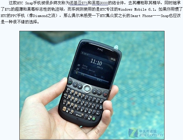 诺记E71黑莓9000灵魂附体 HTC Snap评测