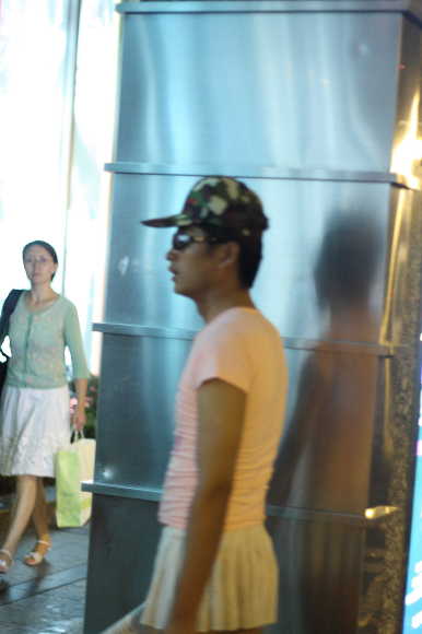 昨晚几好友约在来福士看电影,一友人姗姗来迟,称其刚在地铁站外见得某网络异装红人正在“看”报纸。。。(朋友开始回顾此男网络发家史,详见各大搜索引擎,此处不细表),我们年幼的八卦小宇宙迅速成长,瞬间燃烧了,一行数人决定前往看个究竟,于是有了以上第一手热辣辣照片。