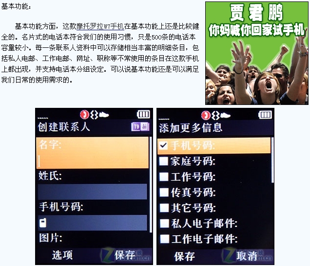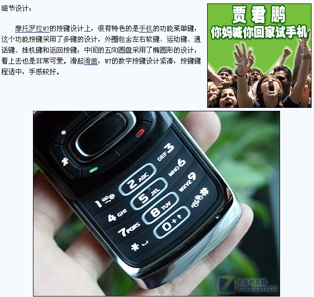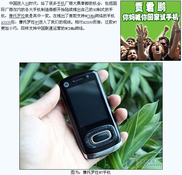 WCDMA好玩动感手机 摩托罗拉W7首发评测
