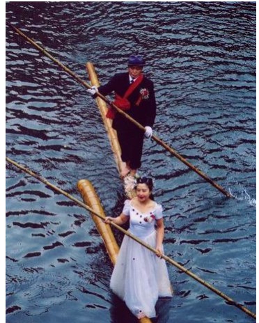 贵州遵义的,我上大学时看到过,这叫“独竹飘”,遵义地区特色运动项目,每年端午节都要举行比赛的