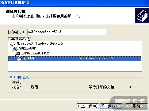 向导走。在向导里要用到打印机名,这可以在主机上查到。