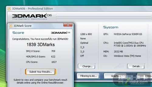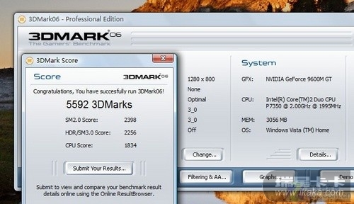 这是9600M GT的分数,已经属于中高端了,可以流畅运行常见游戏!