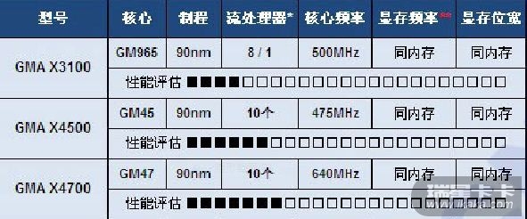 GMA X4700似乎没见过,这个有点太少见了吧?另外,GMA X4500MHD怎么没见到啊?