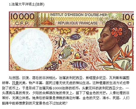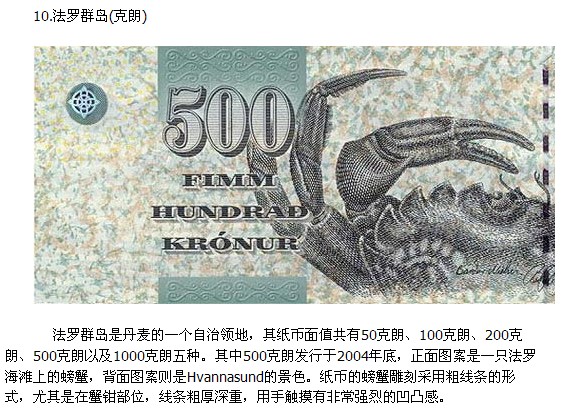 世界各国由于其历史、文化的各不相同,表现在纸币的颜色、肖像以及总体设计上也千差万别。但不论哪个国家和地区,好看的纸币总是令人心情更愉快。《金钱的艺术》一书作者大卫·斯坦迪什日前公开了最漂亮的十一大纸币:
