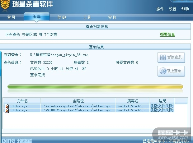 先把两个文件隔离(千万不要在没清除病毒之前却载瑞星,否则两个病毒一发作:kaka12: )