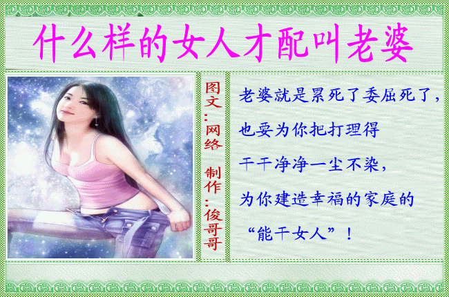 如果这样的女人才能做老婆。。。。。那现在90%的青年男子将没老婆了。。。。你那做一桌子菜。。。。就已经把90%的女生定义为只能当小M了。。。。。