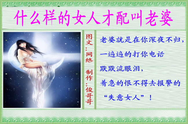 你那种是上个世纪的定义。。。中国男人比女人几千万。。。想要老婆就迁就下吧。。。。:kaka4: