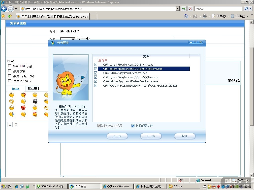 我的意思是说我运行什么程序然后用卡卡扫描都显示在上面了.都成了可疑文件.请问这个是正常的吗?区重分了.全盘都格了.系统也重装了,还是这样.