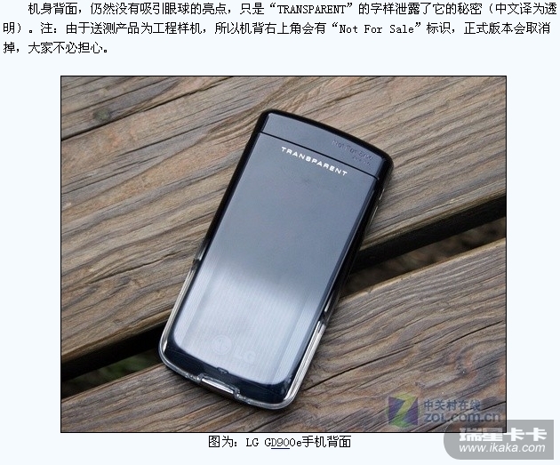 3吋WVGA屏+800W镜头 透明LG GD900e评测