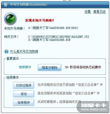 也许楼主的卡丁车中招了,比如开过外挂什么的,木马已经被嵌入卡丁车程序了