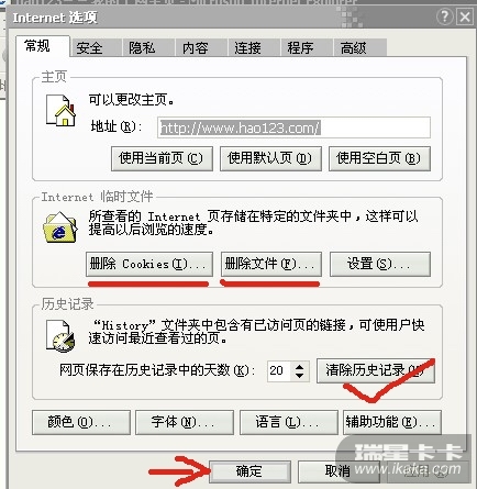 (4)打开IE浏览器,选择“工具”菜单-->“Internet选项”-->“常规”标签-->Internet临时文件设置中的“检查所存网页的较新版本”选择“每次访问此页时检查”。并在Internet临时文件设置中点击“删除文件”,在“删除所有脱机内容”前打勾后点击确定关闭对话框,关闭所有IE窗口;