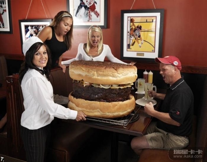 世界最大汉堡,重74.75公斤,你可以在美国密歇根州索斯盖特市的麦利运动烧烤吧花399美元买到。
