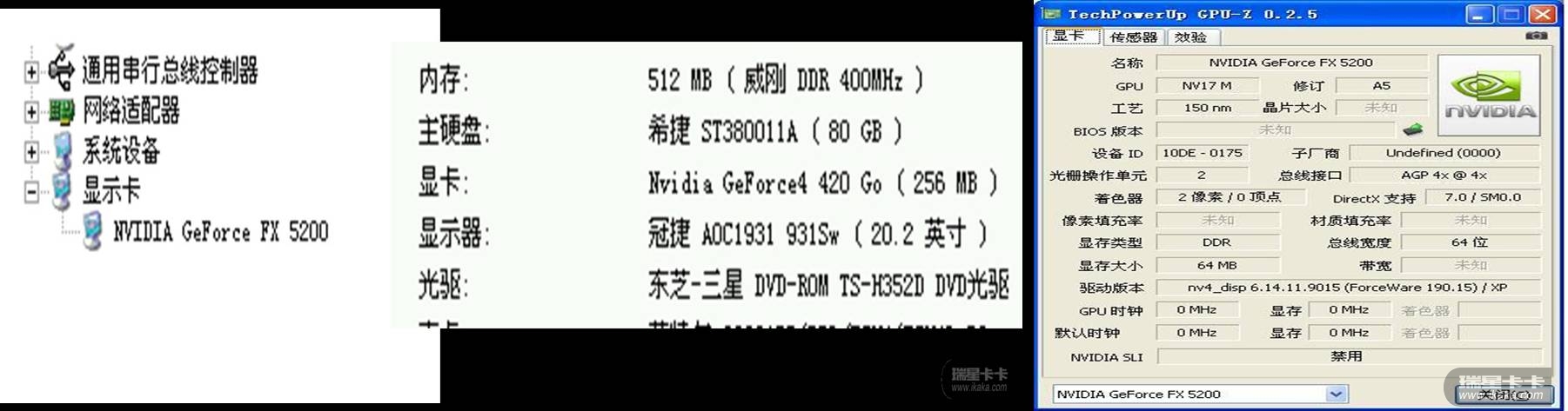 左边是设备管理器显示的:NVIDIA GeForce FX5200