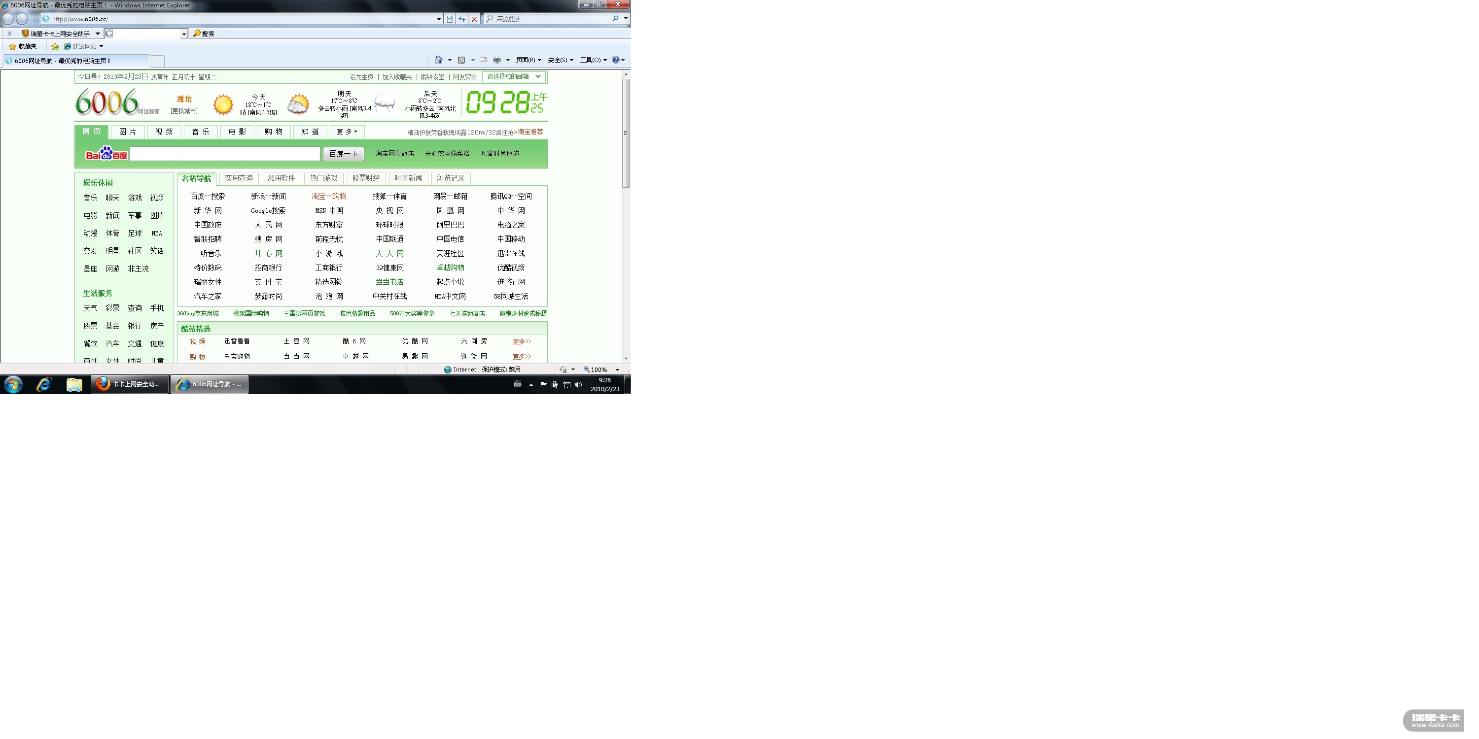 本人的ie首页设为hao123,并且用卡卡保护了!!!