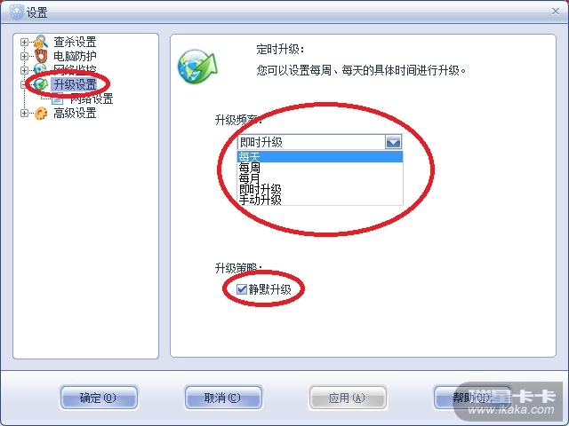 升级频率可以手动设置的在设置主界面——升级设置——升级频率,建议选择静默升级,这样不会干扰您的正常使用