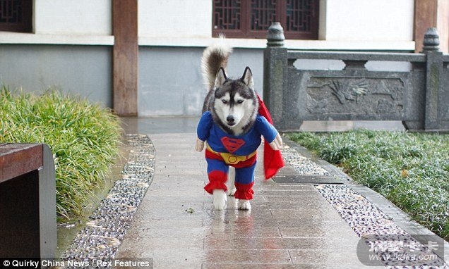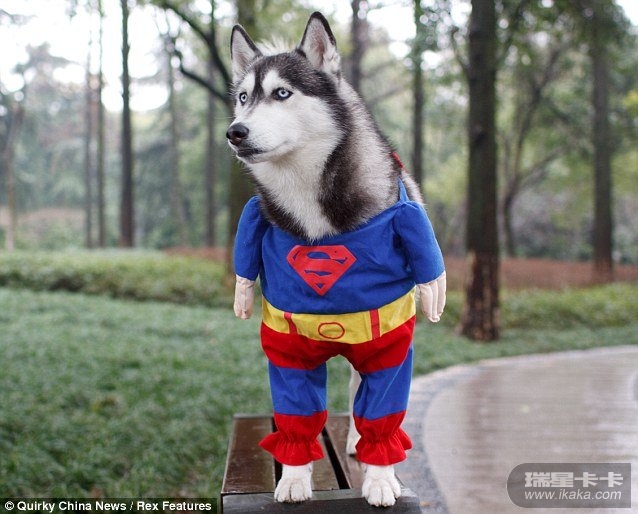 国际在线专稿:据英国《每日邮报》报道,近日在中国某论坛一只名为“Ice”的哈士奇狗穿着超人服出现在网络后,便引起网友的热情追捧,图片点击率也飙升。