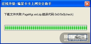 瑞星卡卡上网安全助手无法升级,显示"下载文件失败:PageMgr.xml.zip,错误代码:0x0/0x0(check)"。卸载之后重新安装最新版本,问题仍然存在。