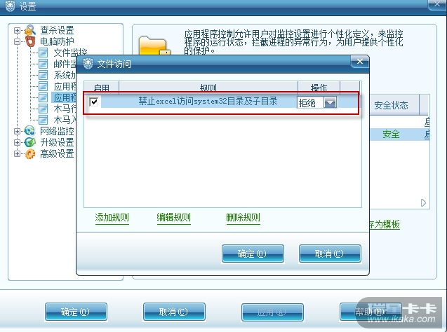2、excel不属于病毒,防止它访问system32 目录的目的何在?楼主没说.