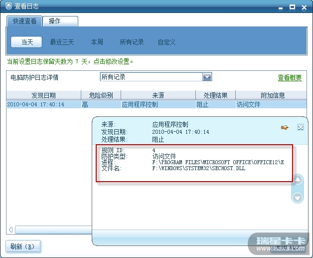 结果打开Excel表格,需要访问system32文件夹,但是在excel访问后并且已经打开了后瑞星的防御窗口才出现