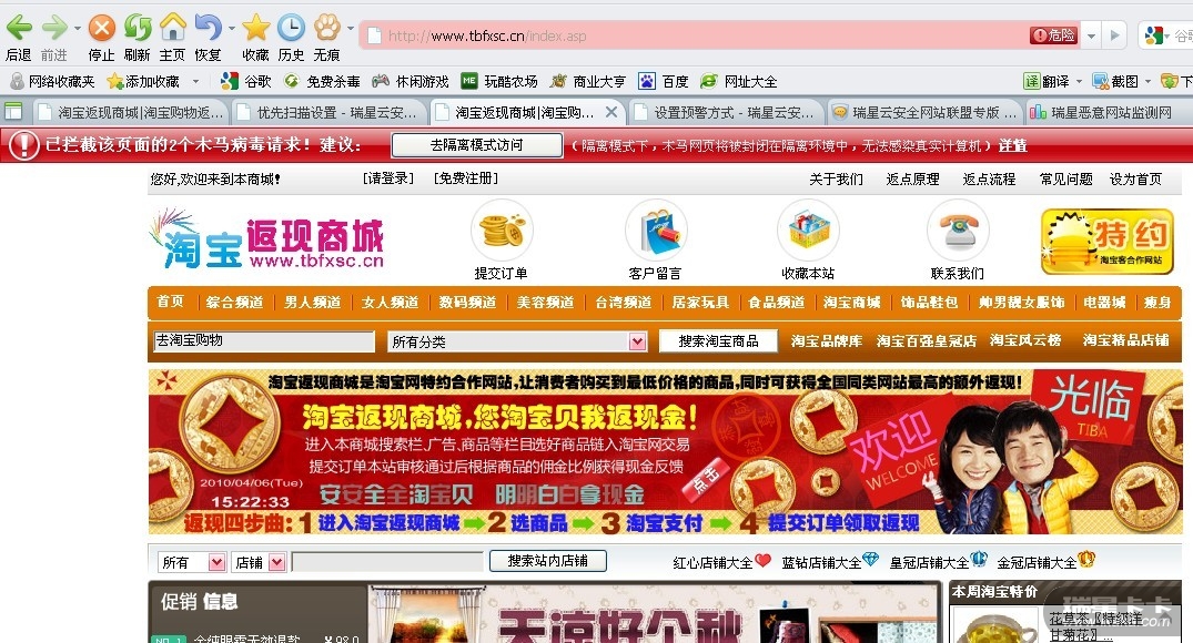 没有,我这里没有装360,瑞星杀毒软件未对网站拦截。且使用工具看了一下网站未见异常。