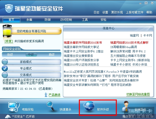 将杀毒软件升级到最新版