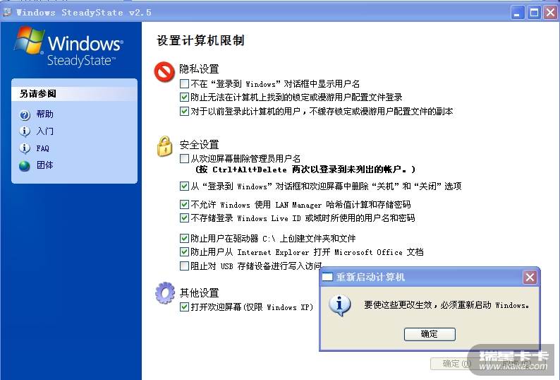 SteadyState是微软为正版windows xp 或 vista 用户提供的一个系统保护工具。