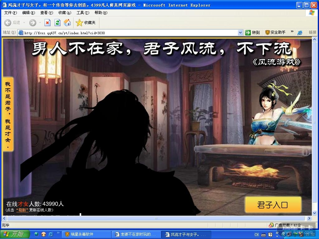我这里从瑞星软件主界面点击瑞星网访问正常,不排除系统中毒的肯能性,开着ie扫描sreng日志上来。