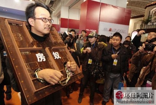 2007年12月11日,第九届中国住交会在北京开幕。行为艺术家梁克刚的头和双手被“房奴”的镣铐紧紧锁住,他频频到各大房地产开发商的展台“抗议”,表达自己的行为艺术。当行为艺术结束,打开“房奴”镣铐后,该行为艺术家终于露出笑容。