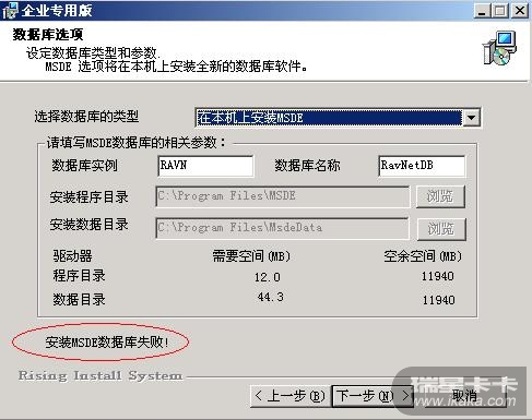 因为服务器故障,需要重新安装瑞星服务器端,卸载了原来的瑞星,重新安装时,总提示“安装MSDE数据库失败”,无法继续安装,怎么回事?