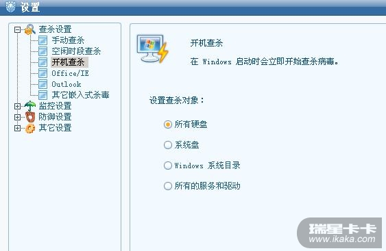 瑞星网络版开机扫描 在系统中心设置了不开启 但是开机后还是出现开机扫描对话框。