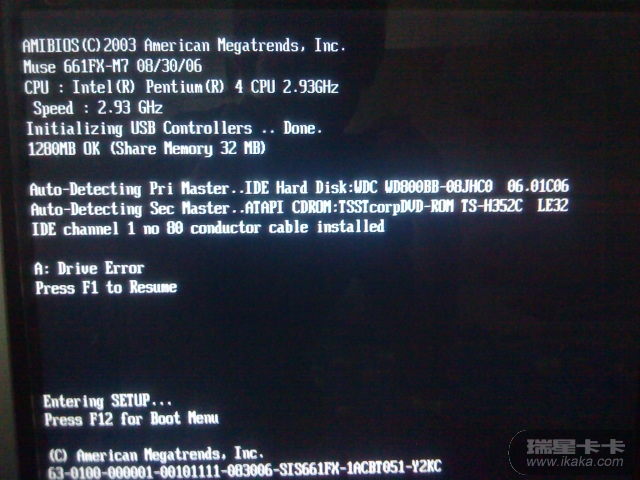 把软驱禁用掉,第一启动设置为硬盘或者光驱。