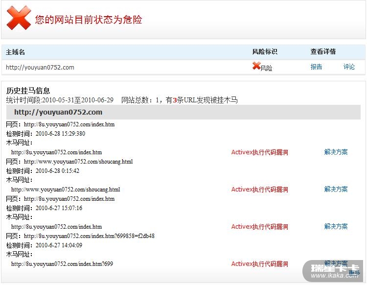 2010年6月27、28日连续收到4条发现页面被挂木马的邮件,并按照解决方案进行处理,然后今天早上进行申诉。 早上06:50又收到新邮件: =============================================================================================
