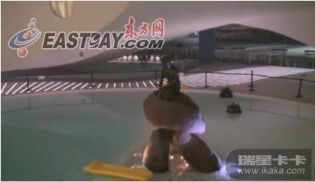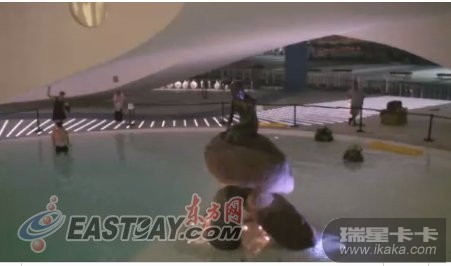 从视频截图中看,除了两位游泳者,现场至少还有两名围观人员。从时间上判断,这些“深夜来客”很可能是场馆的工作人员,在对池子进行清理工作的同时与小美人鱼像进行了“亲密接触”,不过他们显然并不知道还有正在摄像的“装置艺术”这件事,更不知道自己的一举一动已经被实时拍摄下来,并且已被眼尖的网友发现。