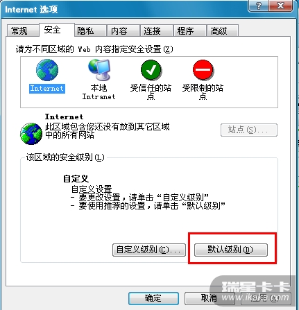 请先尝试回复IE默认设置。