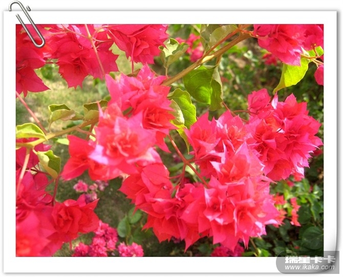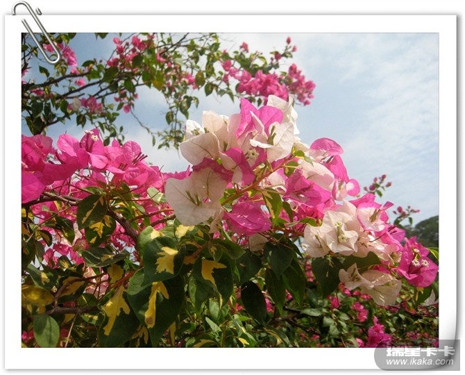 三角梅不是梅花,胜似梅花,遍地欲燃,绚烂如霞。争奇斗艳的三角梅,把东坪山的山谷点缀得生机勃勃格外美丽。只见有的三角梅满枝都长了五彩缤纷的叶子(大家还以为那是花),露出几根银色的花蕊,像一个个小姑娘在花中沉思。重瓣三角梅的花瓣则紧紧挨在一起,像是穿着百褶裙。一阵微风吹来,又像一位婀娜多姿的少女翩翩起舞,时隐时现。