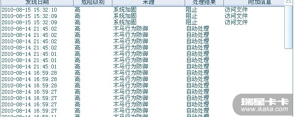 汗死,我是楼上提问题的,忘记注册的号了,只能重新注册了个,谢谢大家。那些毒已经没有了,安全模式下也扫描了一次,没有查到了。现在日志里一直有木马防御行为,系统加固这些提示,请问下这些是什么?是不是有木马在攻击我?我对电脑知识不怎么懂的,应该怎么 防护?请教回答下谢谢。