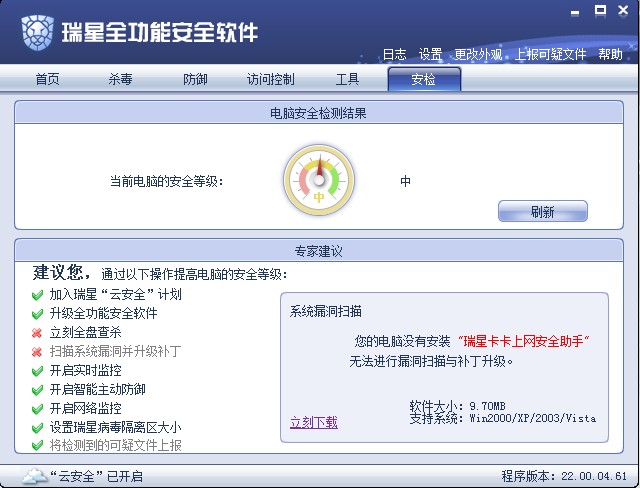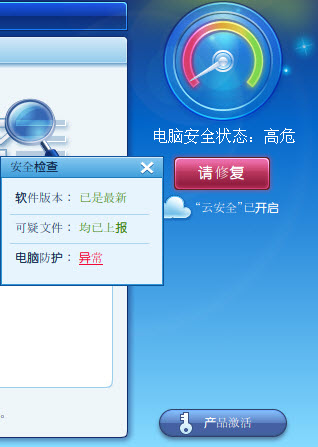 3是图形反映当前系统安全状况。出现问题直接点击就可以进行修复非常方便