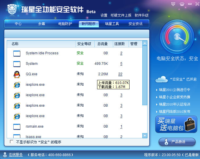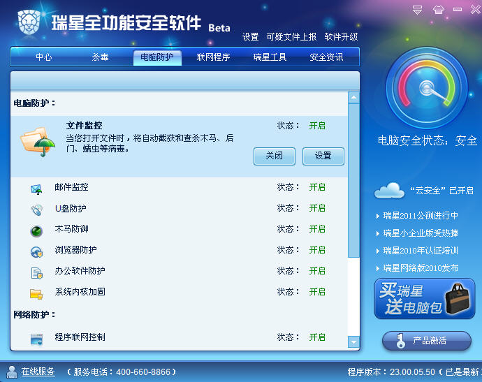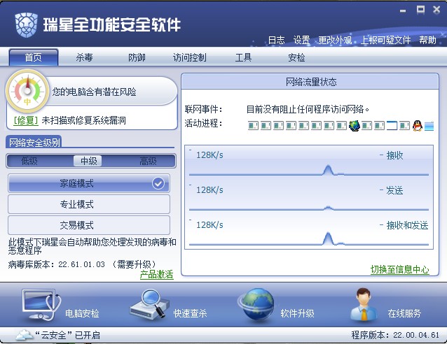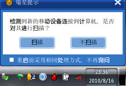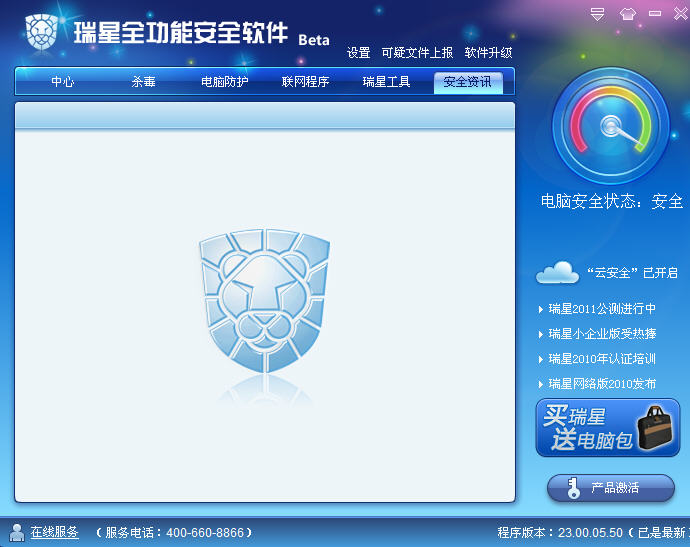 平时瑞星这里显示都是一个看似自我宣传的文字,但是在紧急安全事件发生的时候瑞星可以通过这个模块对用户进行安全提醒!