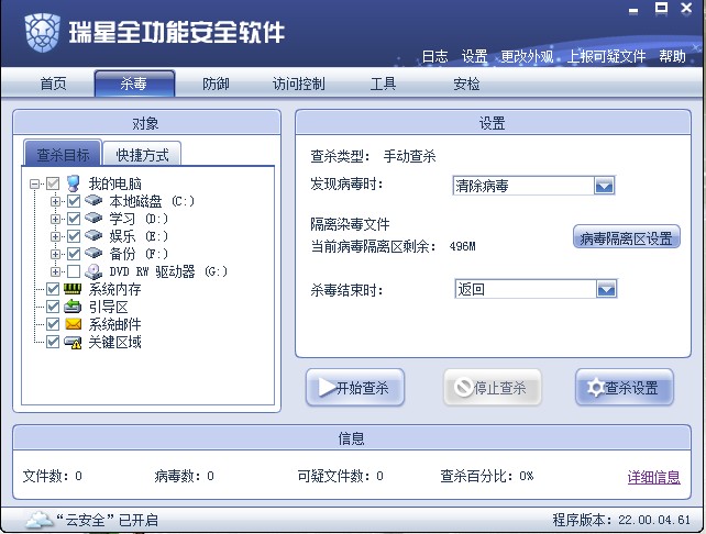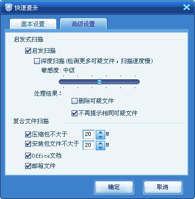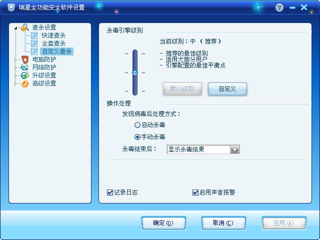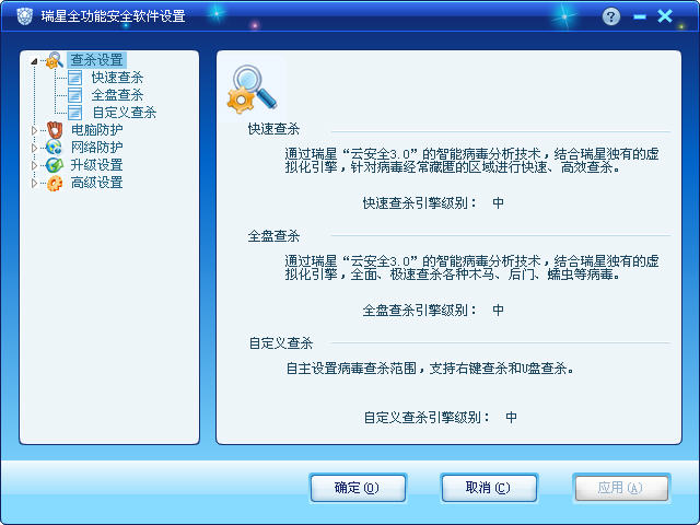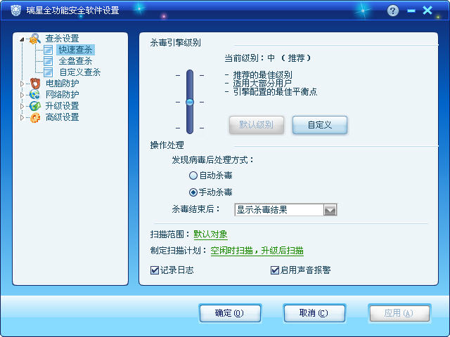 第一次安装2011/系统全部安装完成后建议使用全盘查杀,以后则快速查杀。