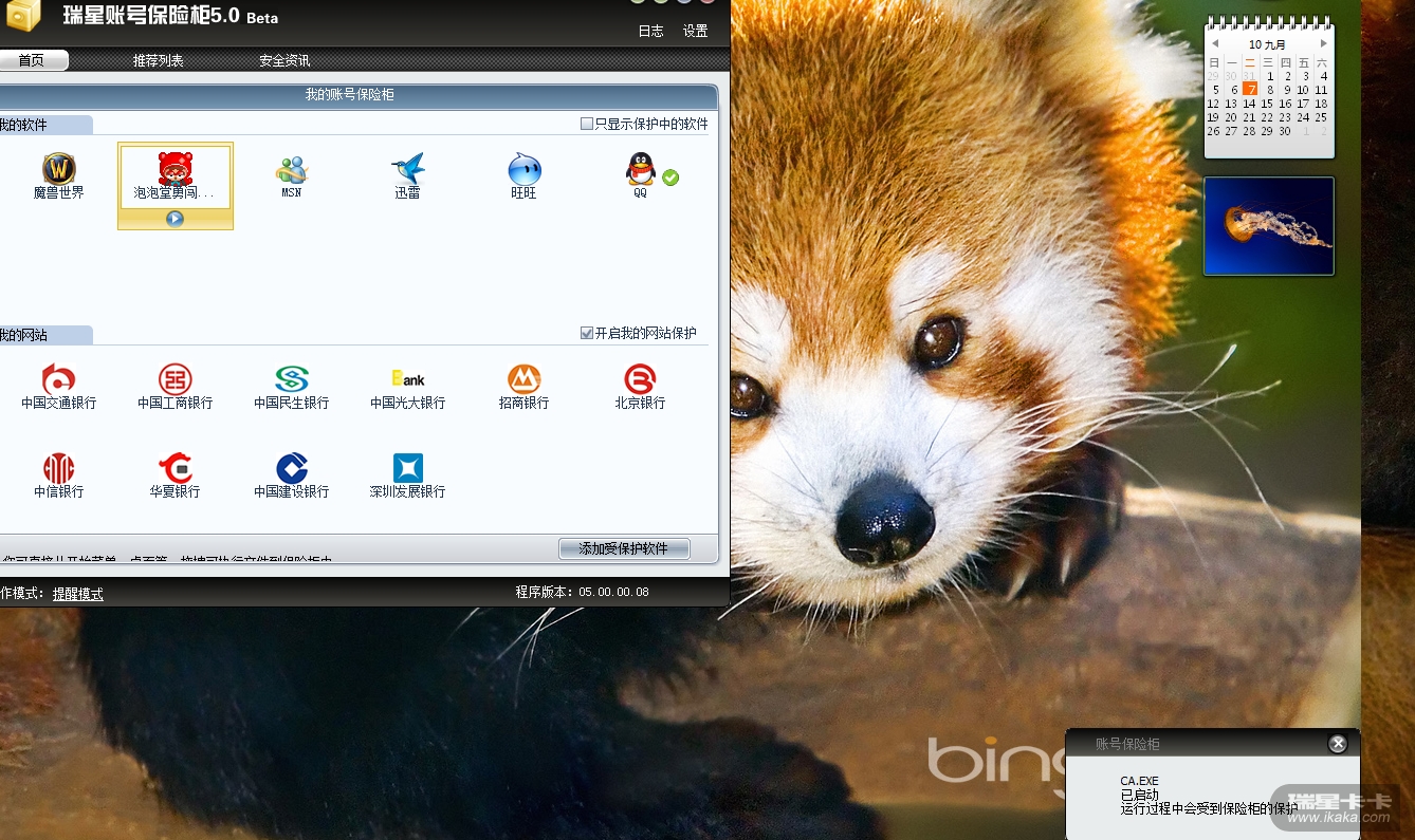 问题描述:在使用账号保险柜开启泡泡堂、剑侠情缘网络版叁等软件时提示开启保护,等一会就提示程序关闭~!