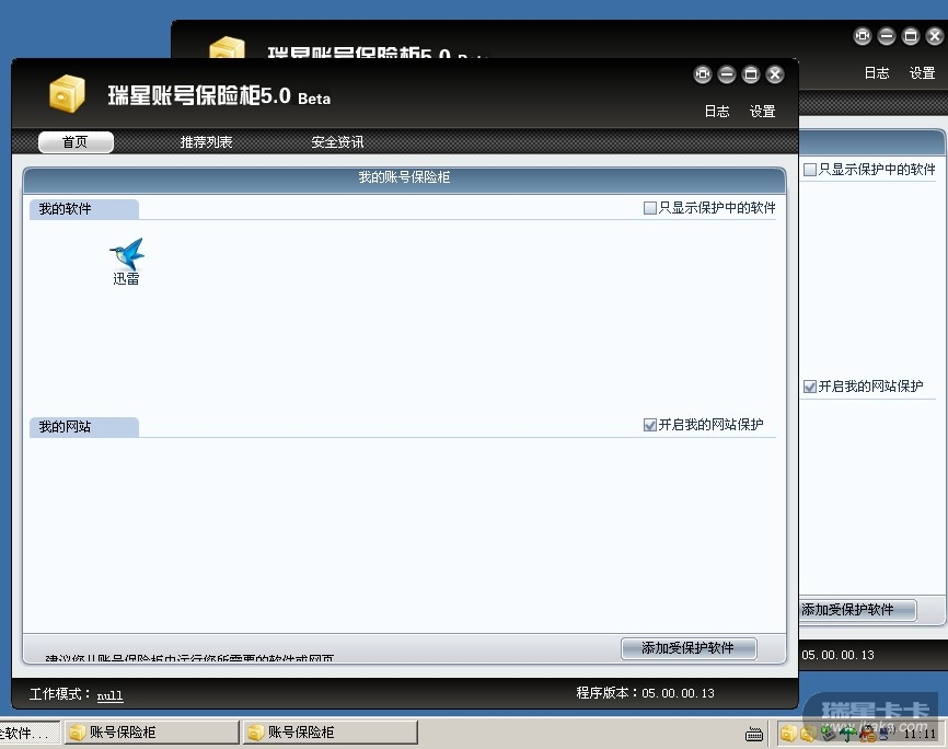 问题描述:“瑞星帐号保险柜”升级后,系统托盘上出现两个“瑞星帐号保险柜”的图标,而且双击都能打开“瑞星帐号保险柜”,