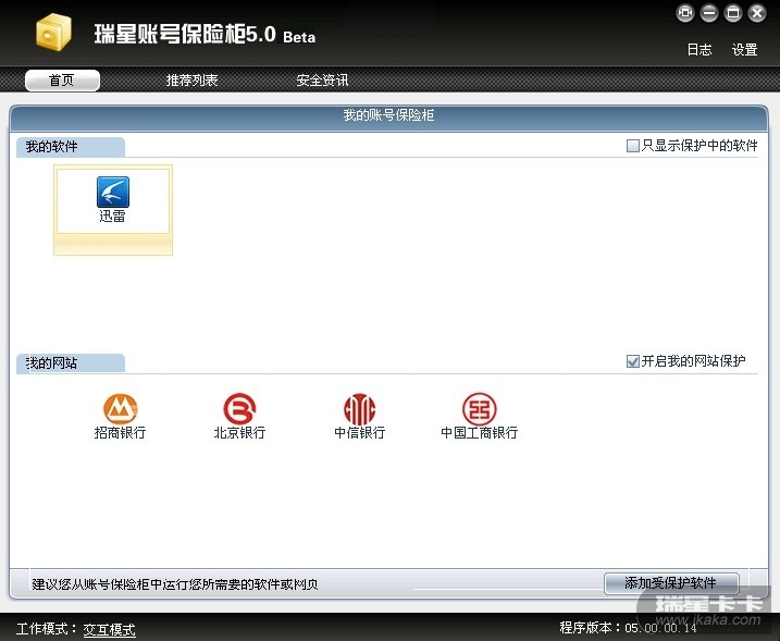 安装瑞星2011后有个“C:\Program Files\Rising\RSD”,再安装账号保险柜又要安装C:\Program Files\Rising\RSD,而此时,瑞星自我保护功能生效,使其无法更改C:\Program Files\Rising\RSD,导致无法卸载、升级保险柜,所以,建议把账号保险柜集成在瑞星2011里,将RSD放入瑞星自己的安装目录里即会避免此事!