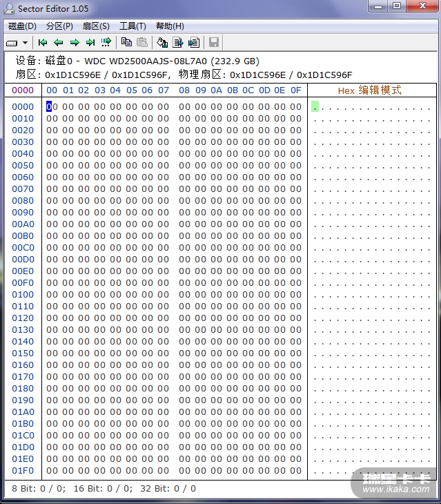 在PE下,用SectorEditor将硬盘末端扇区488396997至488397167全部填“0”(见下图)。