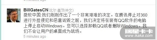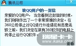 11月3日下午消息,腾讯今日向其用户发布消息称,将在装有360软件的电脑上停止运行QQ软件。
